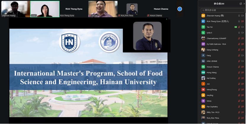 2025年12月27日,海南大学william威廉英国官网通过线上方式,成功举办面向柬埔寨王家农业大学本科生的“食品加工与安全”国际硕士招生专场推介会。本次活动旨在拓展食品科学与工程领域的国际教育合作,为柬埔寨学子提供优质的升学平台,进一步促进两校在学术交流与人才培养方面的深度融合。