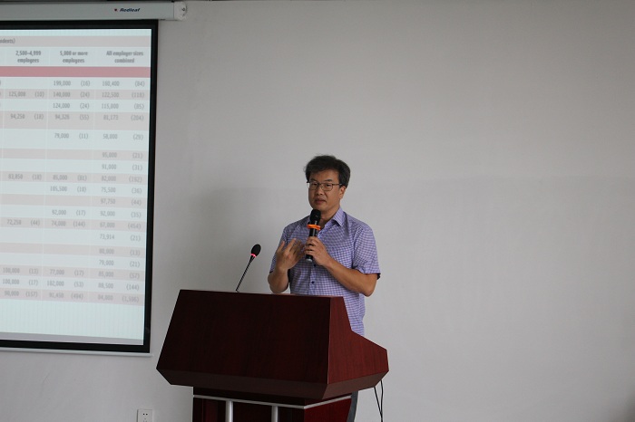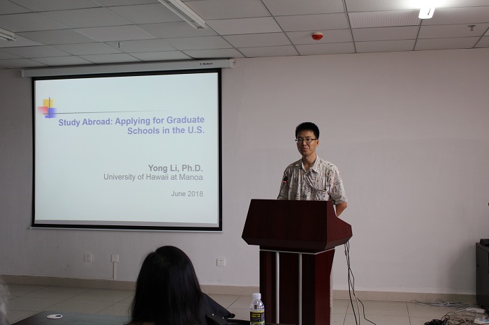 2018年6月8日上午八点,海南大学食品学院在研发楼610教室学院举办美国夏威夷大学招生介绍会,食品学院党委书记邓秀成、副院长史学群、申铉日和党委副书记王红英出席本次介绍会。招生介绍会荣幸邀请到美国夏威夷大学马诺阿分校热带农业与人力资源学院人体营养、食品与动物科学系备李勇教授、美国夏威夷大学马诺阿分校热带农业与人力资源学院食品与动物科学系代理系主任郡素君教授和北卡罗来纳州立大学人类健康研究所博士后何凯希教授来院为学院学生做专业介绍。