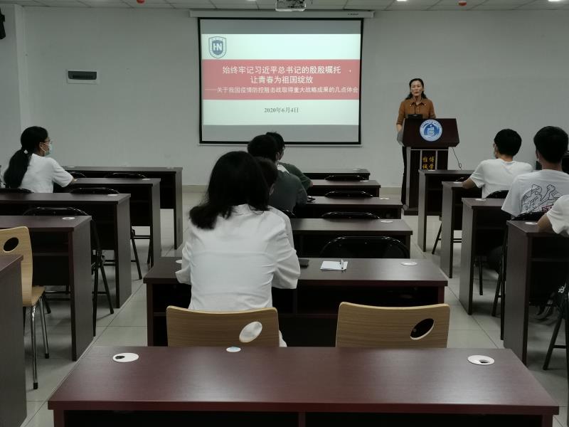 2020年6月4日晚,校党委常委、组织部长韩淑梅走进课堂,为william威廉英国官网2018级食品科学与工程类1班学生讲授了一堂精彩的形势与政策课,分享我国疫情防控阻击战取得重大战略成果的心得体会。