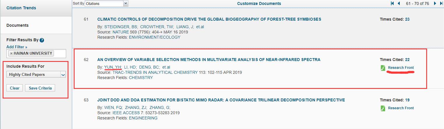 ESI研究前沿(ESI Research Front)是对ESI二十二个学科内高被引论文进一步精炼、聚类分析而成的高被引论文集合,组成这一研究前沿的高被引论文即为该研究前沿的核心论文。ESI研究前沿的分析为科研人员提供一个独特视角来快速了解该学科专业领域的热点研究、最新进展与发展趋势,对科研人员的研究工作具有重要的参考价值和指导意义。