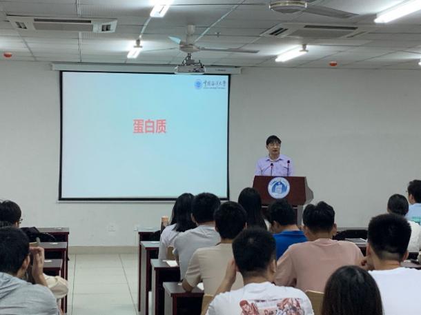 毛相朝教授主要讲授“蛋白质、水分”等相关课程内容。课程讲授中毛教授首先对蛋白质结构和性质等基础理论知识作了全面的线性梳理,讲解了水的相关理论知识,同时,还对酶在水产资源加工中的应用作了深入讲解,从多个方面讲解了水产加工中酶改性的最新研究成果。