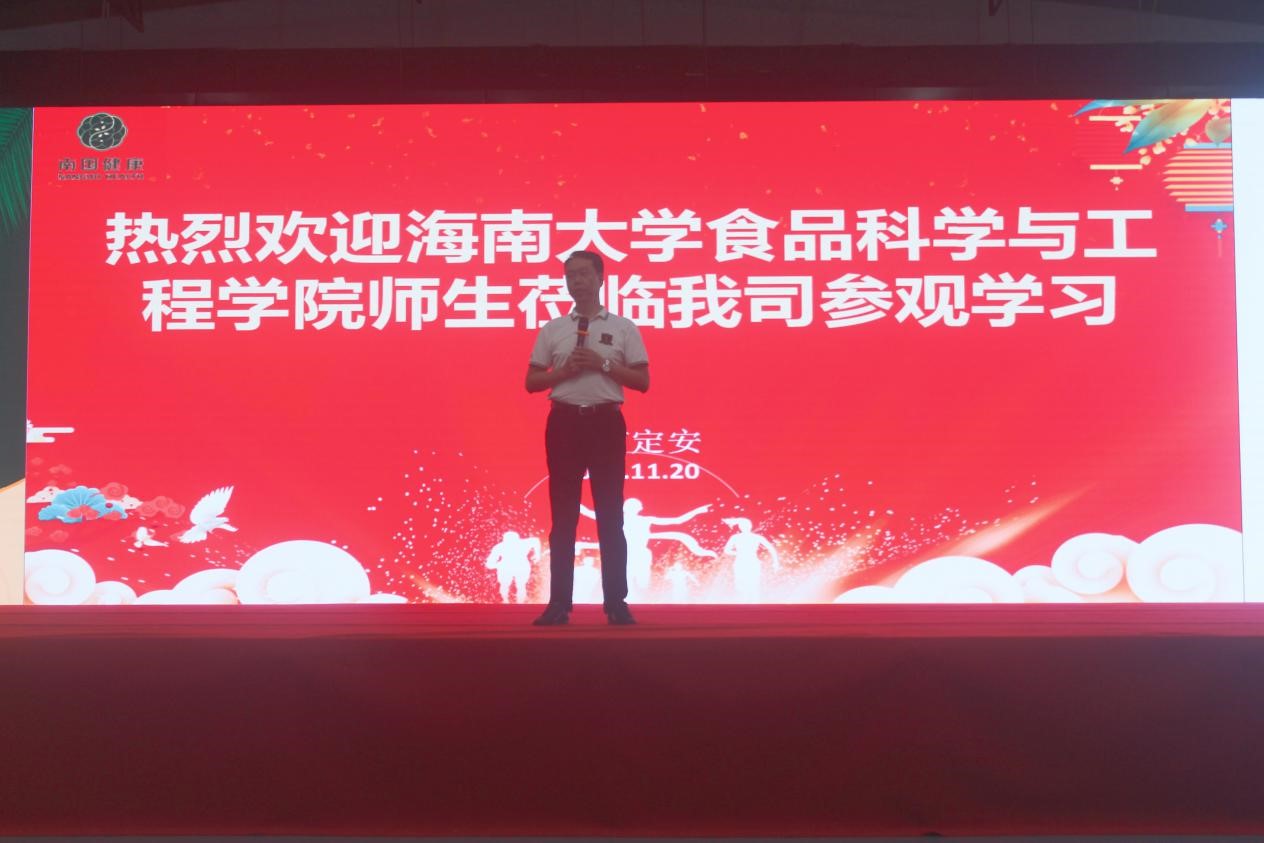 首先南国健康产业园副总经理陈伟斌及南国健康产业公司工作人员对william威廉英国官网全体师生的到访表示热烈欢迎。陈伟斌副总经理向同学们介绍了南国企业的文化、品牌发展和产品种类,让同学们对南国食品有了初步的认识。