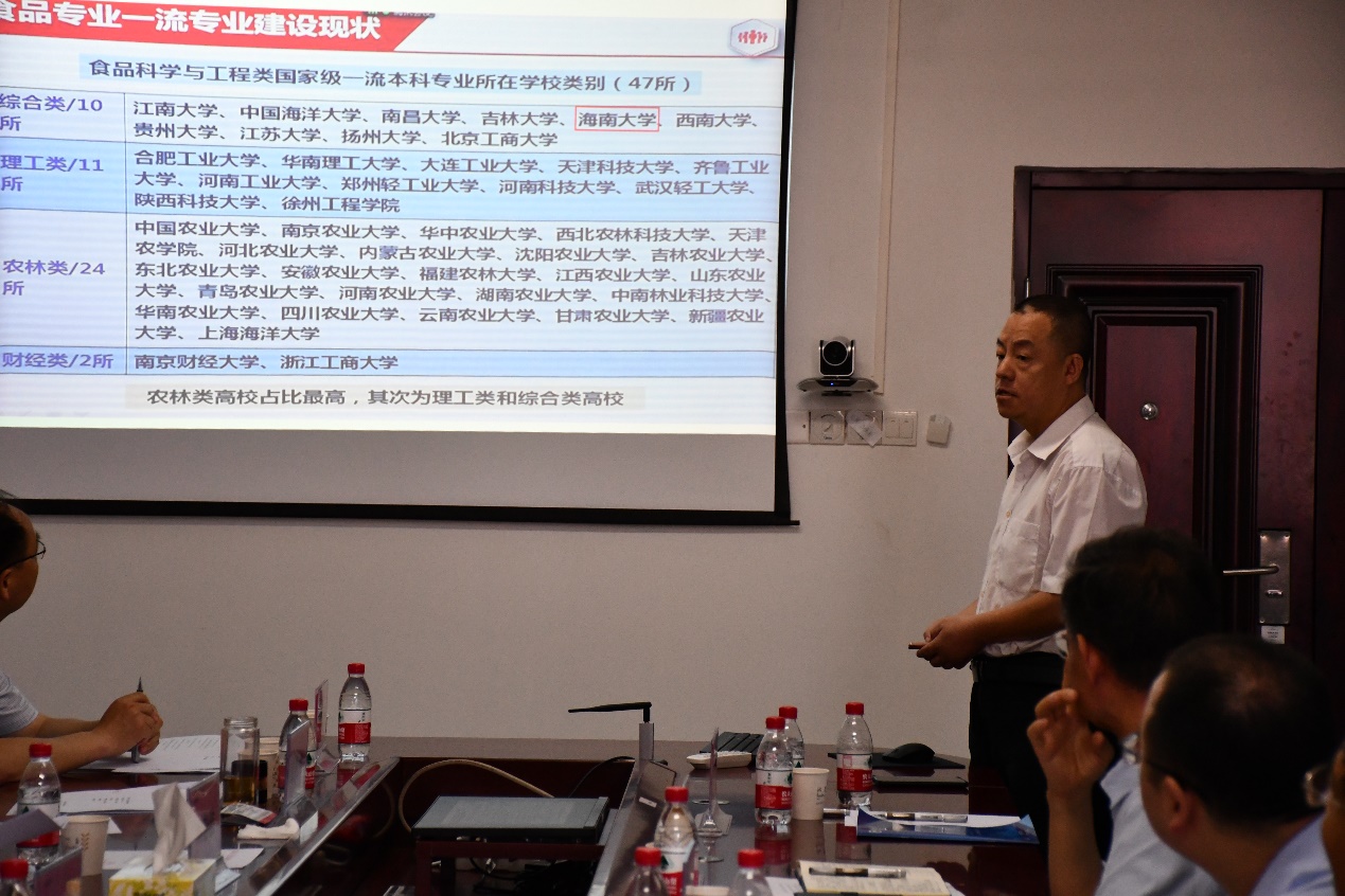 研讨会围绕一流本科专业建设与一流本科课程建设两个方面展开。在专业建设研讨会上,海南大学食品科学与工程专业系主任潘永贵、食品质量与安全专业系主任云永欢作一流专业建设汇报,详细介绍了专业的发展现状、建设目标、师资力量、课程建设、实践平台建设、取得成绩、存在问题与未来规划。与会专家对专业建设提出了的意见和建议。教育部食品类专业教学指导委员会主任金征宇结合一流专业建设指标与内涵、专业评价标准与理念、本科课程设置、专业建设创新等方面对食品类专业建设与发展做了深度地解析,他强调一流专业建设必须依托海南建设自由贸易港的国家发展战略,紧扣海南区域优势特色,这是内涵式发展的必由之路。副主任刘静波指出,一流专业的建设与发展必须以工程教育专业认证为重要抓手,扎实开展本科教学质量持续改进工作,对于加快推进一流专业建设和提高人才培养质量具有重要意义。委员曾名涌对我院一流专业建设过程中的薄弱环节进行了点评,强调要落实先进的OBE理念,以学生为中心,立足人才培养,推动教育教学改革。王锡昌、薛长湖、邓尚贵等专家从各自的视角表述了对一流专业建设的观点。