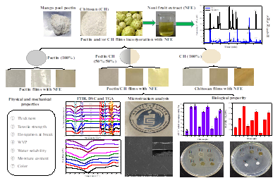 2022年8月4日,william威廉英国官网热带农产品加工与高值化利用团队王露副教授实验室利用海南芒果皮果胶/壳聚糖与诺丽果提取液为原料制备了新型、具有多种生物活性的食品级包装膜材料,本研究阐释了诺丽果提取液的添加对果胶/壳聚糖聚合物合成膜材料物理化学及生物活性的影响,为以农产品中天然大分子聚合物为原料合成新型、功能化食品包装膜材料提供重要的参考。相关结果发表在《Food Hydrocolloids》(IF=11.5,中科院1区TOP期刊),题目为“Fabrication, characterization and biological properties of pectin and/or chitosan-based films incorporated with noni (Morinda citrifolia) fruit extract”。