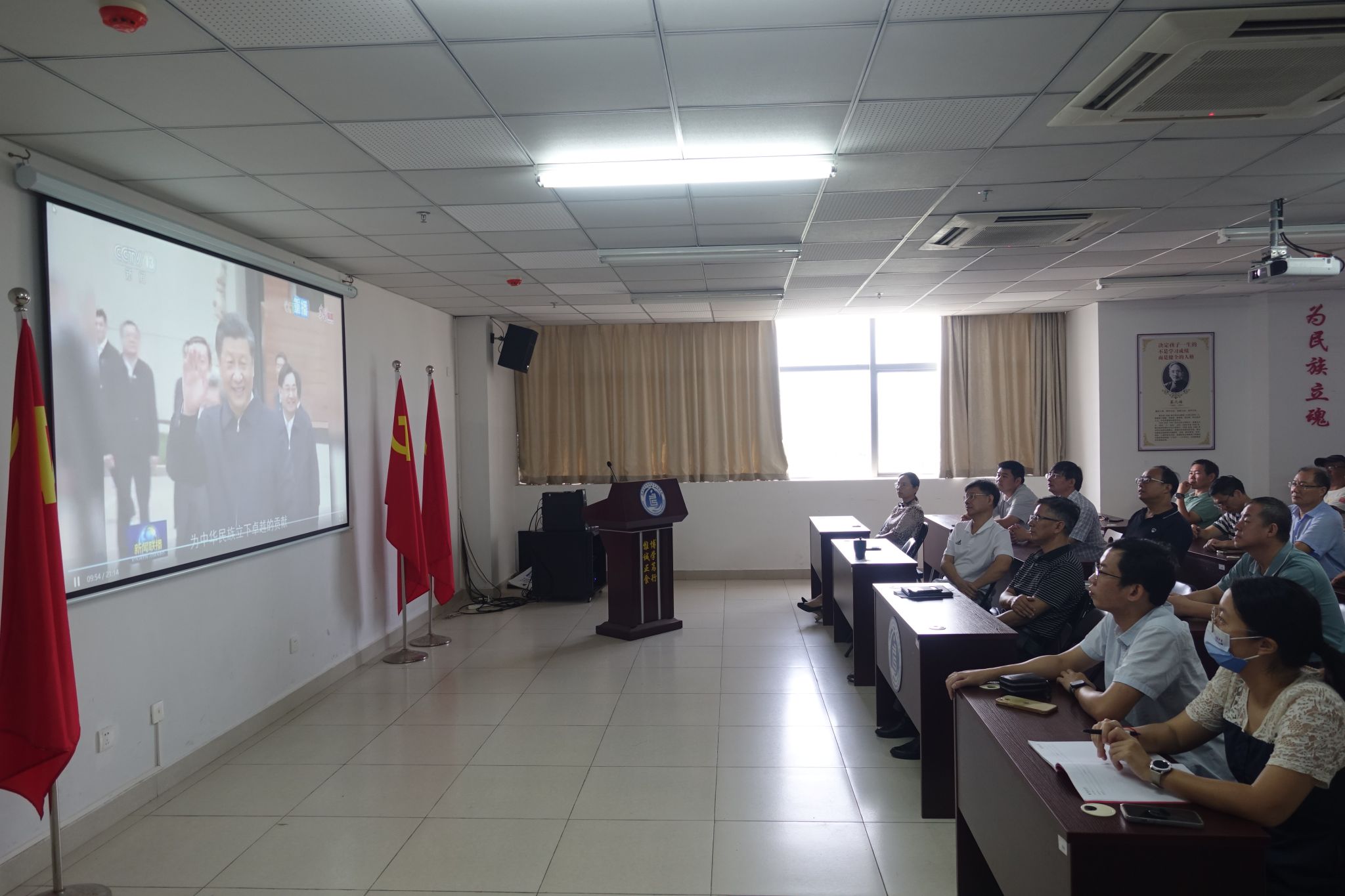 大家随着镜头认真观看和重温了党的十八大以来习近平总书记对广大教师的关心关怀故事,深刻学习领会习近平总书记关于教育、教师的重要论述和重要指示,深深为习近平总书记念师恩、颂师情的暖心故事所吸引,更为李保国、黄大年、张桂梅等教师楷模的事迹感动和激励。
