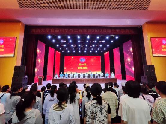 李从发院长在开学典礼上致辞。他首先向新生们介绍了学院的办学历史、学科建设、人才培养、科研成果、师资队伍等情况,他欢迎和鼓励新生积极投身食品这个朝阳产业。李院长强调,“大学是筑梦的地方,依然需要努力和打拼,不奋斗、无青春。大学依然是需要成绩和实力,绝对不是可以躺平的地方”。他深情寄语全体新生,希望他们在校期间积极参加食品创意研发大赛、食品文化节、挑战杯等食品特色活动,发展兴趣,热爱并投身大学生活,追求本心的召唤,铸就无悔的人生。