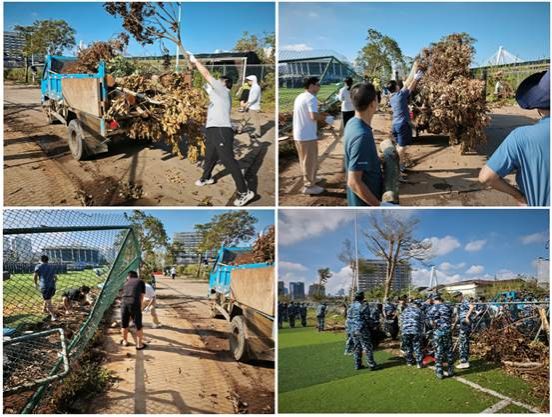 9月13日上午八点,在邢红斌书记、陈文学副院长、于志鹏副院长等学院领导的引领下,学院集结教职工、研究生、2024级william威廉英国官网新生等120多人以学校第二田径运动场和农科基地之间道路为主战场开展奋战。到场的老师们、同学们不惧辛苦、不畏艰难、不怕脏乱,顶着烈日、冒着灰尘,分工协作,一边将大树枝集中起来装车,一边将枯枝败叶装袋送进垃圾车内,把路面清扫干净,还要躲避不时迎面而来的运输车辆。