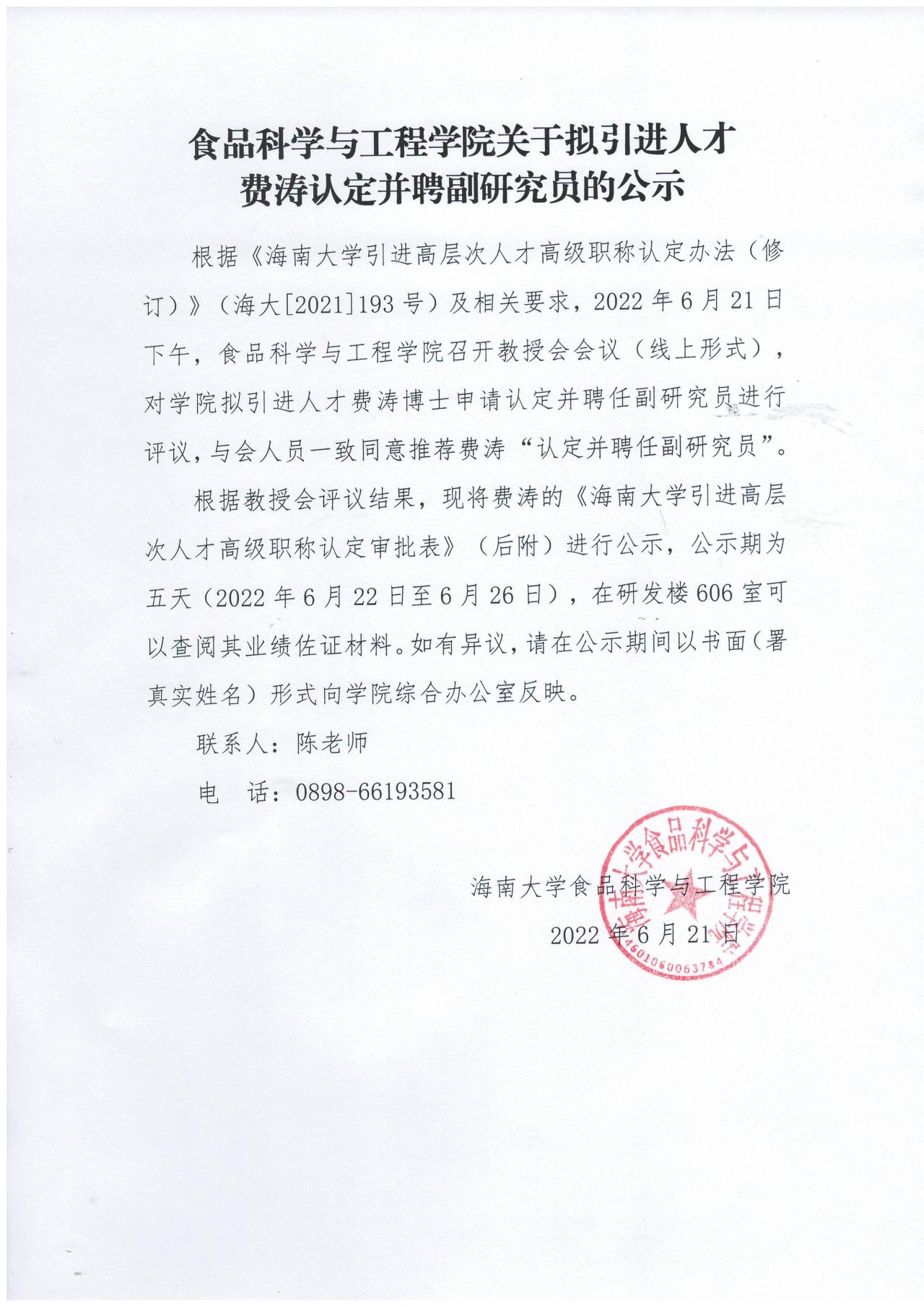 费涛-海南大学引进高层次人才高级职称认定审批表.pdf